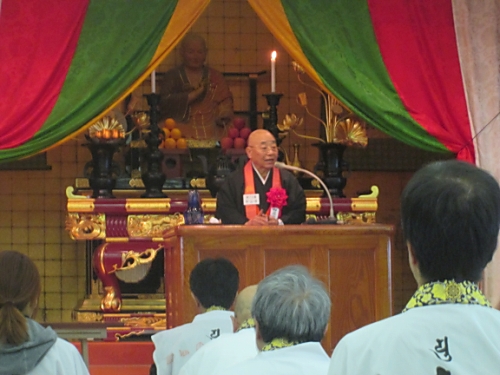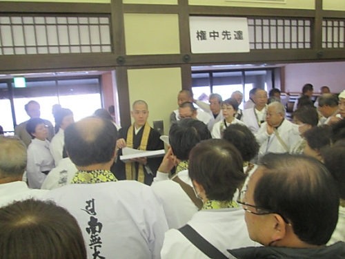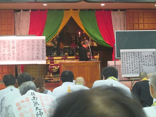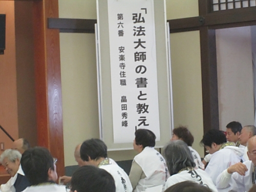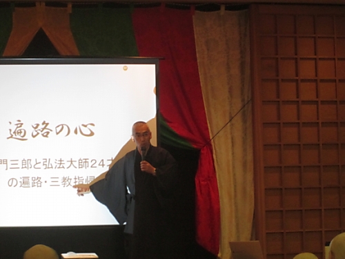 1 目 的: 弘法大師のみ教えを体し、公認先達の資質の向上と、四国霊場同行二人の信仰の高揚に資するため。 2 主 催: 四国八十八所霊場会 3 期 日: 平成28年12月8日(木) 4 会 場: 善通寺市 総本山善通寺内遍照閣 5 参加者: 本年度昇補される先達 6日 程 (時 間 割) 8:00 受 付 9:00 開会式 9:40 特別講演 「真言密教の二十一世紀」 講師 慶応義塾大学講師 宗教学者 正木 晃 11:20 講 義 「衛門三郎 逆打ちの心」 講師 第51番石手寺住職 加藤俊生 12:10 昼 食 12:50 講 義 「理趣経に学ぶ」 講師 第28番大日寺住職 川崎一洸 12:50 講 義 「弘法大師の書と教え」 講師 第6番安楽寺住職 畠田秀峰 14:30 閉会式 の日程で行われました。