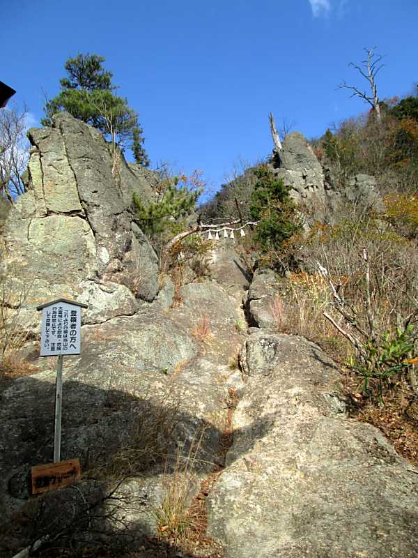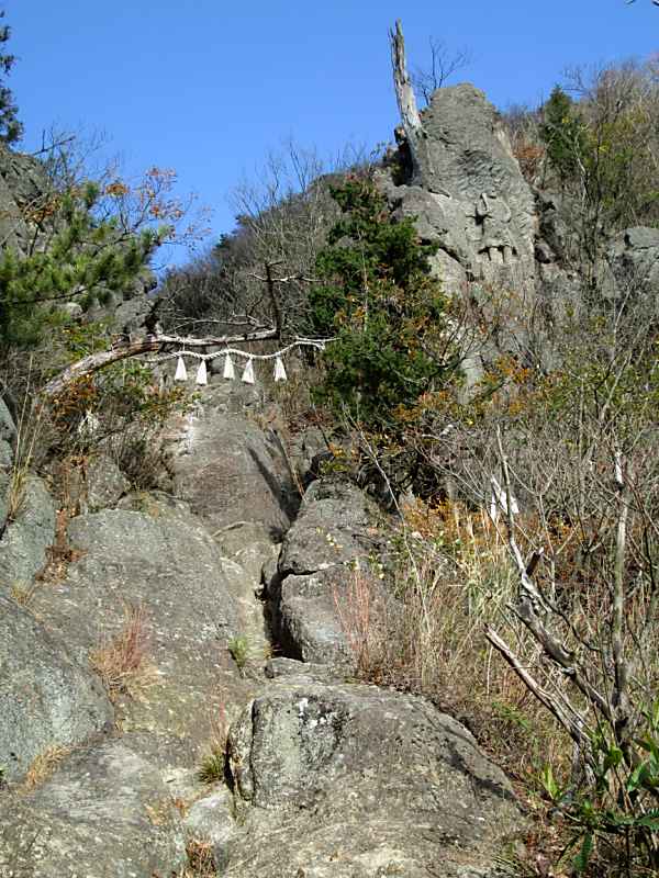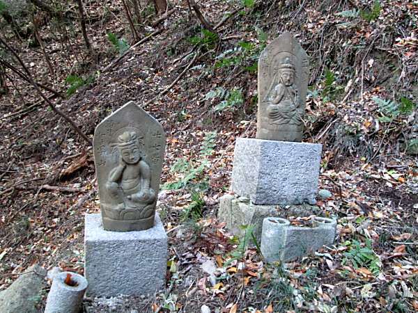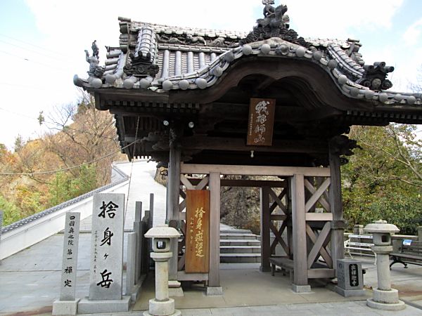 テレビで見たと思いますが定かでない記憶をたどってネットで調べたら、善通寺周辺の人々が昔、春と秋の彼岸の中日の春分、秋分の日に、海岸寺から、歩いてぐるっと一周する行事見たことを思い出して、善通寺に行くのでこの機会に弘法大師が幼少のころ歩いたであろう道を歩いてみることにしました。 四国別格二十霊場 第十八番 海岸寺から 四国八十八ヶ所霊場 第七十一番札所 弥谷寺へ 母の実家とされる海岸寺から→71番弥谷寺→72番曼荼羅寺→73番出釈迦寺→捨身ケ嶽禅定(三百年以前は出釋迦寺本堂)→74番甲山寺→75番善通寺 今回は善通寺宿泊のためここまでで終わり 海岸寺でネットで調べた遍路道を聞いたら、奥の院(海岸寺の場合大師堂)に聞きなさいと言われるので、奥の院の納経所で聞くと先週行って来たと言って新聞の記事を見せてくれた、そこで遍路道を聞くと「あそこの断崖は、先週行ったが荒れていてとても歩けない」と言われるではないか、県道を回っていくことを盛んに進められ丁寧に地図まで書いて説明をしてもらった。 県道の道はよく説明してもらえるが、肝心な遍路道は、ダメ、ダメの一点張りで、 2014年今年の流行語大賞候補の『ダメよ〜、ダメダメ』を連想してしまいました。 ネットで調べて道はある程度分かっていたので、遍路道を歩いてみることにしました。遍路道は、弥谷寺から海岸寺へ歩くのが普通らしく遍路の道案内⇒マークが振り返らないとみられない状況でした。集落の人に聞きながらやっとダムサイトの整備された遍路道にたどり着きました。後は、西国三十三観音が目印で谷を詰めて行く感じです。 ここまでくれば、歩く人が少ないせいか薄い獣道とも、遍路道ともわからない道を落ち葉を踏みふみ歩きます途中に天霧八王山奥之院の祠があり谷筋をジグザクに攻め上れば間違うことなく尾根道と出合う三差路の天霧峠に着きます、そこには西国第33番像もあります。後は弥谷寺に向かいます。 弥谷寺の納経所で聞いたら一般的には弥谷寺から海岸寺に行く人が多いそうです、ちなみに夏場は、草刈が進んでないので通らない方がよいと言っていました。(谷筋で、マムシが多いのでは?) 第七十三番札所 出釈迦寺の奥の院 標高481mの捨身ケ嶽禅定 弘法大師が真魚〔まお〕と呼ばれていた7歳のとき、この山に登り、仏門に入って衆生を救済したいという願いがかなうならば霊験を現すよう、もしかなわないのであれば我が身を以て諸仏を供養すると念じて、断崖より飛び降りた。すると紫雲が湧き起こって釈迦如来が出現し、天女が真魚を受けとめたと言われている捨身ケ嶽禅定に行ってみました。 出釈迦寺の納経所の方に教えてもらった参道の登り方は、「電線が奥の院まで行っているので、それに沿って登るように」とのことで、電線に沿って出釈迦寺脇の道を進んでいくと奥の院に登る参道がある。石灯籠の並ぶ車が通れる参道を頂上近くまで登っていくと山門があり、立派なお堂が見えてくる。お釈迦様が現れたと伝えられる場所である。元はここが出釈迦寺であったが、江戸時代に山麓の現在地に移転したとのこと。 弘法大師が飛び降りたという捨身ヶ嶽禅定は、根本御堂の下をくぐって登山道をさらに急な山道を、鎖をつたって岩を登ったところにあるようです。今回はいかなかった。 捨身ヶ嶽禅定の納経印は、出釈迦寺の納経所でもらいました。 車の通れる道がある出釈迦寺に申し出れば車での参拝もOKのようです。 |