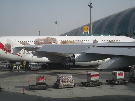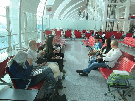 大阪でもらったドバイ空港での合流パンフレットを片手に搭乗ゲートの番号により移動 ドバイ着後、関西空港組6名と東京、成田からの添乗員1名、東京組2名と顔合わせ これからは添乗員さんがいるので、もうこれで一安心