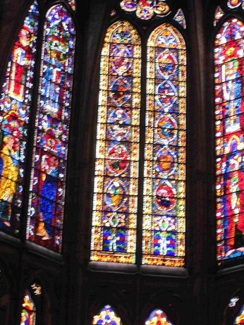 6月18日(土) 専用バスで、サンティアゴ騎士団の本拠地であったレオンへ向かいます。 レオンのステンドグラスが美しい大聖堂を見学。 大聖堂を見ながら、ロマネスク、ゴシック建築の違いを説明を受ける。 ちんぷんかんぷん ? 分かりません。 でもいろいろ教会の天井を見て、説明を聞いていくうちに分かるようになりました。