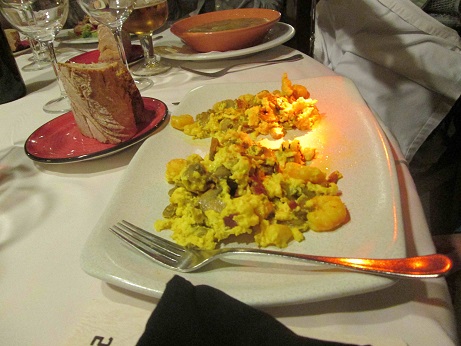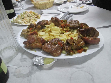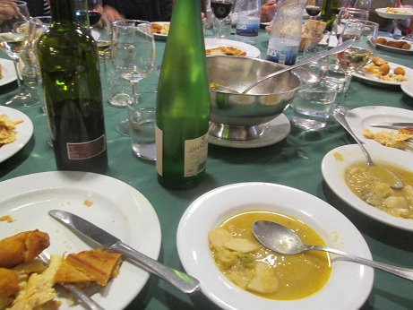 | 旅行最後の夕食 今日は、タコの外、イカの墨煮 今日も、美味しい冷たいビール、ワインは、もちろん飲み放題 飲める人にとっては、たまりませんネ!!! |