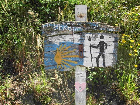 | ロバで巡礼をする人 | 道中の手書きの案内板 |