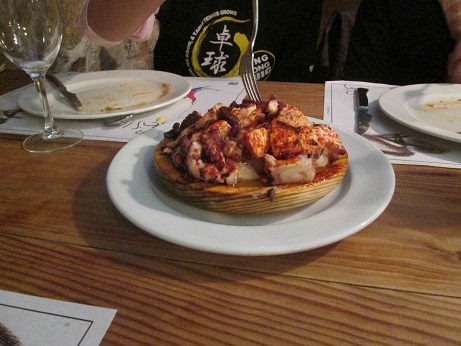 何の酒かわかりませんが、アルコールを飛ばしているにもかかわらず強い酒で一口飲み、次が飲めませんでした。 名前を聞くのを忘れました。 長らく分かりませんでしたがNHKのサンティアゴ・デ・コンポステーラ特集を放送していて魔法の飲み物「ケイマーダ」と分かりました ケイマーダとは Queimada(ケイマーダ)は魔女や魔物、超自然的な事象が多く信じられてきたスペインで一番神秘的な土地、ガリシアならではの文化のひとつです。ガリシアの名物、Orujo(オルッホ、葡萄の蒸留酒、イタリアのグラッパ)を素焼きの大きな器に砂糖と一緒に入れて火をつけ、Conxuro(コンフーロ、まじないの言葉)を唱えながらかき混ぜ、火が消えたら飲むなんとも不思議な”儀式”の飲み物。 この儀式は魔女や魔物を追い出す浄化の儀式であるとともに人々に強さや新しい活力を与える儀式とされていて、Conxuroは時に妖しく、時に力強く発声され、人はそのまじないの神秘的な響きと、煽られる青い炎の動きに魅了されます。 |