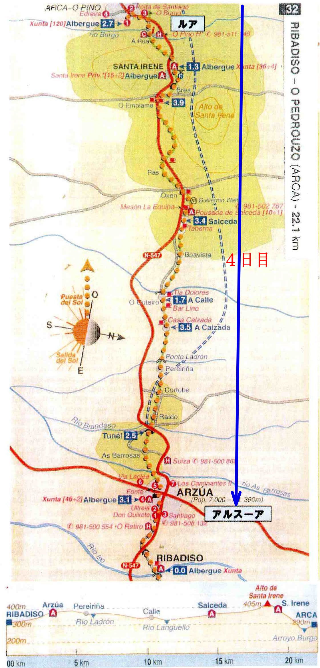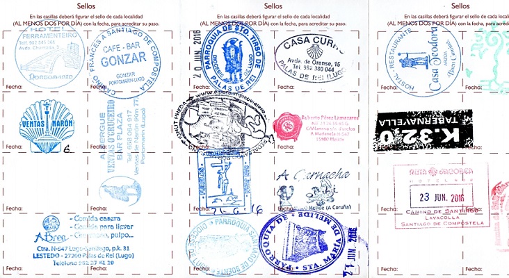 その後、セプレイロ峠を越え、巡礼の出発点となるサリアへ。 到着して、ホテルで巡礼手帳をもらいました。 私は、日本から「日本カミーノ・デ・サンチャゴ友の会」発行の巡礼手帳を持っていき、サンチャゴで巡礼証明書をもらう時に、担当の女性から「日本からようこそと」祝福されました。