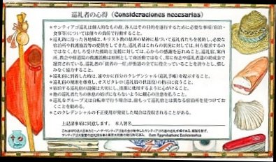巡礼者の必需 巡礼手帳 「巡礼者の心得」 周りの絵が巡礼必需品です。